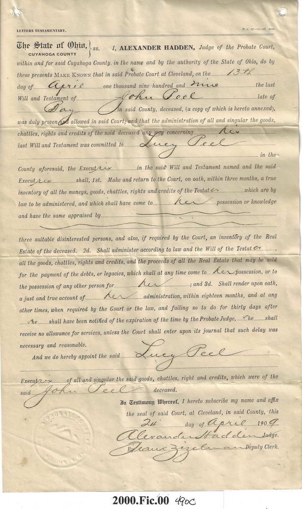 Document Details (Click image to view full size.) Participant Info COLLECTION Aldrich Family Collection CONDITION Good OBJECT_NUMB 2000.FIC.490C OBJECT Probate TITLE HOrse rental receipt IMAGE